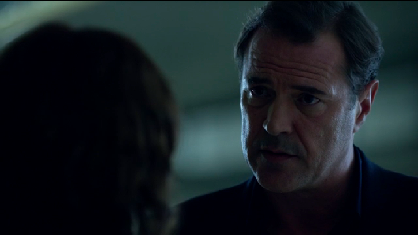 Otto brings his car into a parking garage and gets a text from Carrie, who’s waiting for him, complete with frumpy brown wig (and by “frumpy” I mean “highly resembles my hair right now”). She tells Otto she knows who’s after her and that she has to disappear. She tells him she has nowhere else to go, and needs a plane. His face is sweetly concerned as he asks where she’s going, but she won’t tell. He says he’s happy to help, “but I’m not sure putting you on a plane to nowhere is helping,” and that he’ll only do it if she’s sure that’s what she wants.