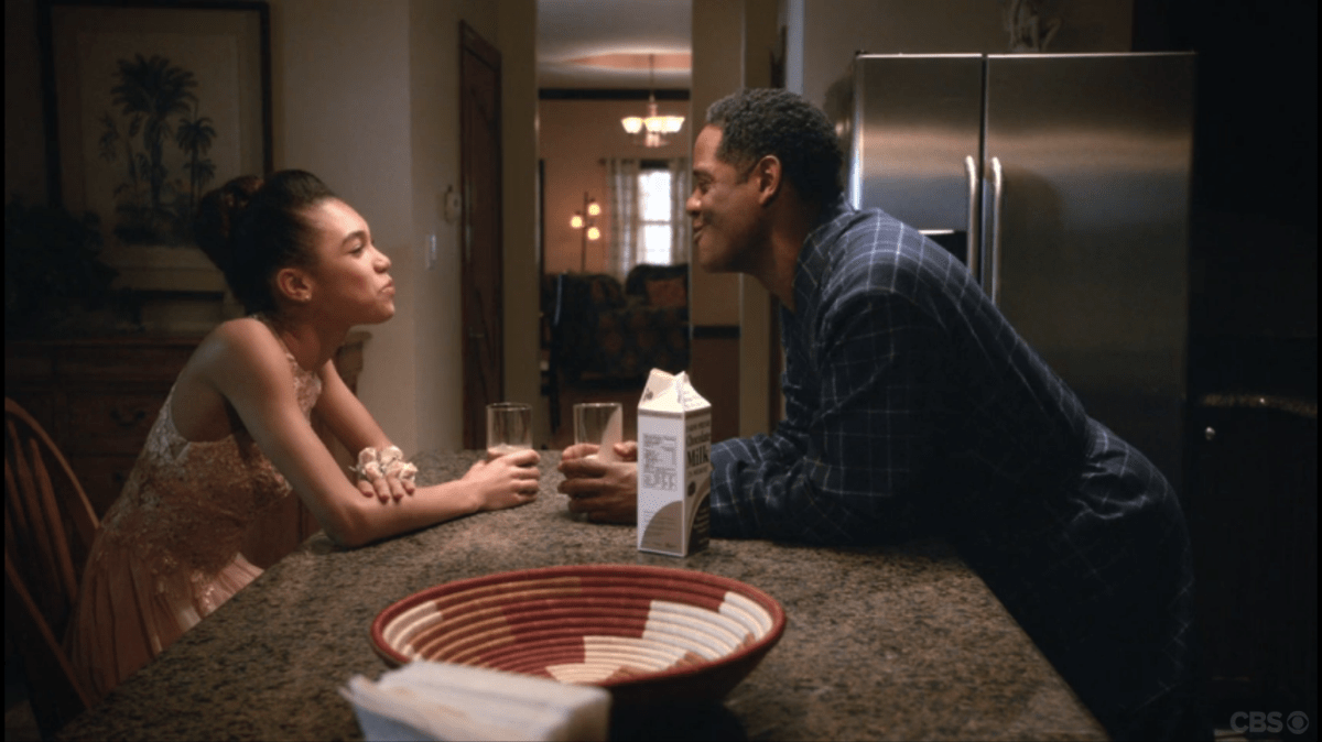 The episode opens with a shamelessly sentimental montage of a father and daughter as the daughter, Yesha, grows up: playing on the rug, going to her first day of school, planning on her education, going to prom. The father is played by Blair Underwood, who is not going to get a whole lot to do in the rest of this episode. After the prom, the little girl, now almost grown, shares a glass of chocolate milk with her father in the kitchen.