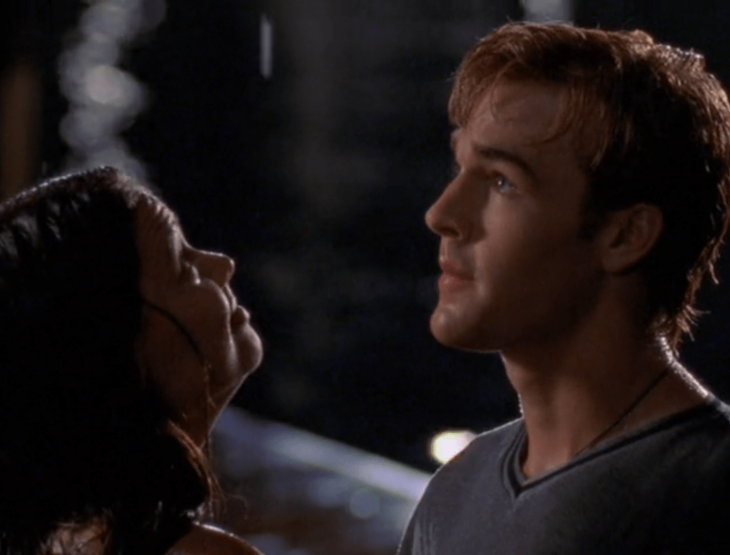 - Pacey refers to Dawson and Joey as Sam and Diane and Mulder and Scully and marvels that they didn’t draw out their “will-they won’t-they” thing for longer. Two shots for meta movie references!