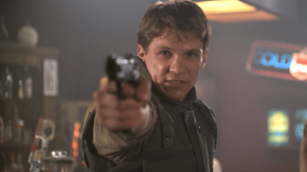 At the scene, he finds Buffy, who saw the reports about the boy on TV. When she tries to apologize for hiding Spike and make up, he just tells her that Professor Walsh is dead. Even though he was just defending her to Forrest, he asks her, “Happy now?” in a super passive-aggressive way. Or just aggressive. She’s rightfully offended, and takes off to Willy’s bar to get information on Professor Walsh’s killer. Riley follows her to offer his help, but when he finds her in a demon bar, he loudly accosts her, “I see you’re not hunting demons, you’re socializing with them–again,” and blows their cover. “That’s smooth, Officer Riley,” Buffy says. “They teach you those undercover moves in Special Forces?” Yeah, again, not the brightest. As Riley is yelling at poor Willy, Buffy sees that he’s sweaty and shaking as well as agitated. Then he pulls out a gun and threatens to shoot a poor old lady (who’s probably a demon, since she’s in Willy’s bar? But she’s crying and trembling, so it still feels unnecessary). He blathers on about how he doesn’t know what’s a lie and what’s the truth anymore, his whole belief system is breaking down, blah blah blah, but Buffy talks him down and he lowers the gun.