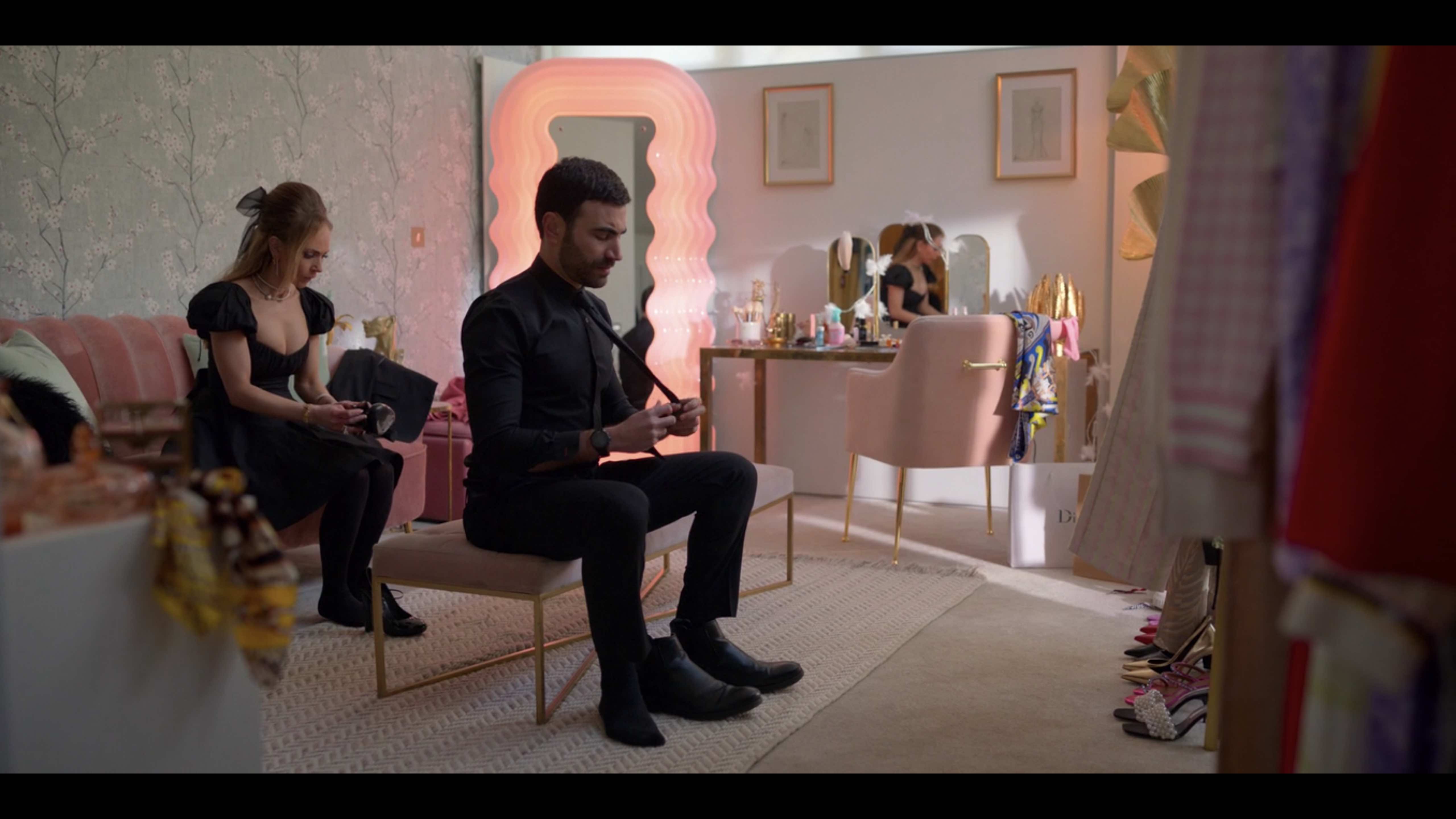 - It gives me so much pleasure that Keeley is wearing an incredibly low-cut minidress with puffed sleeves and a giant black satin bow to this funeral. Of course that’s what she wears! Of course. (Also, I definitely thought they were in some kind of store dressing room buying funeral clothes, only to realize later that this is in fact how Keeley decorates her dressing room, which, again, of course it is.)